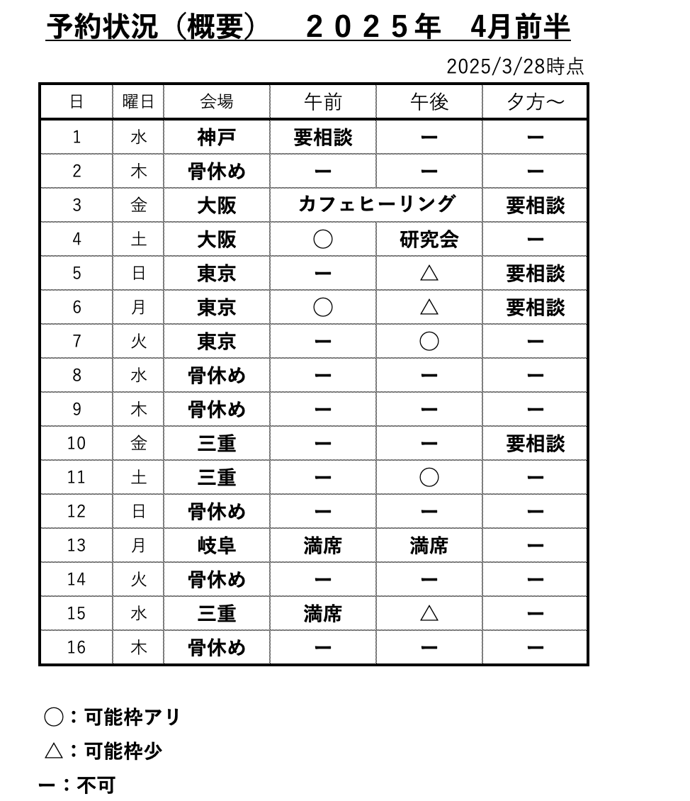 予約状況一覧 4月前半